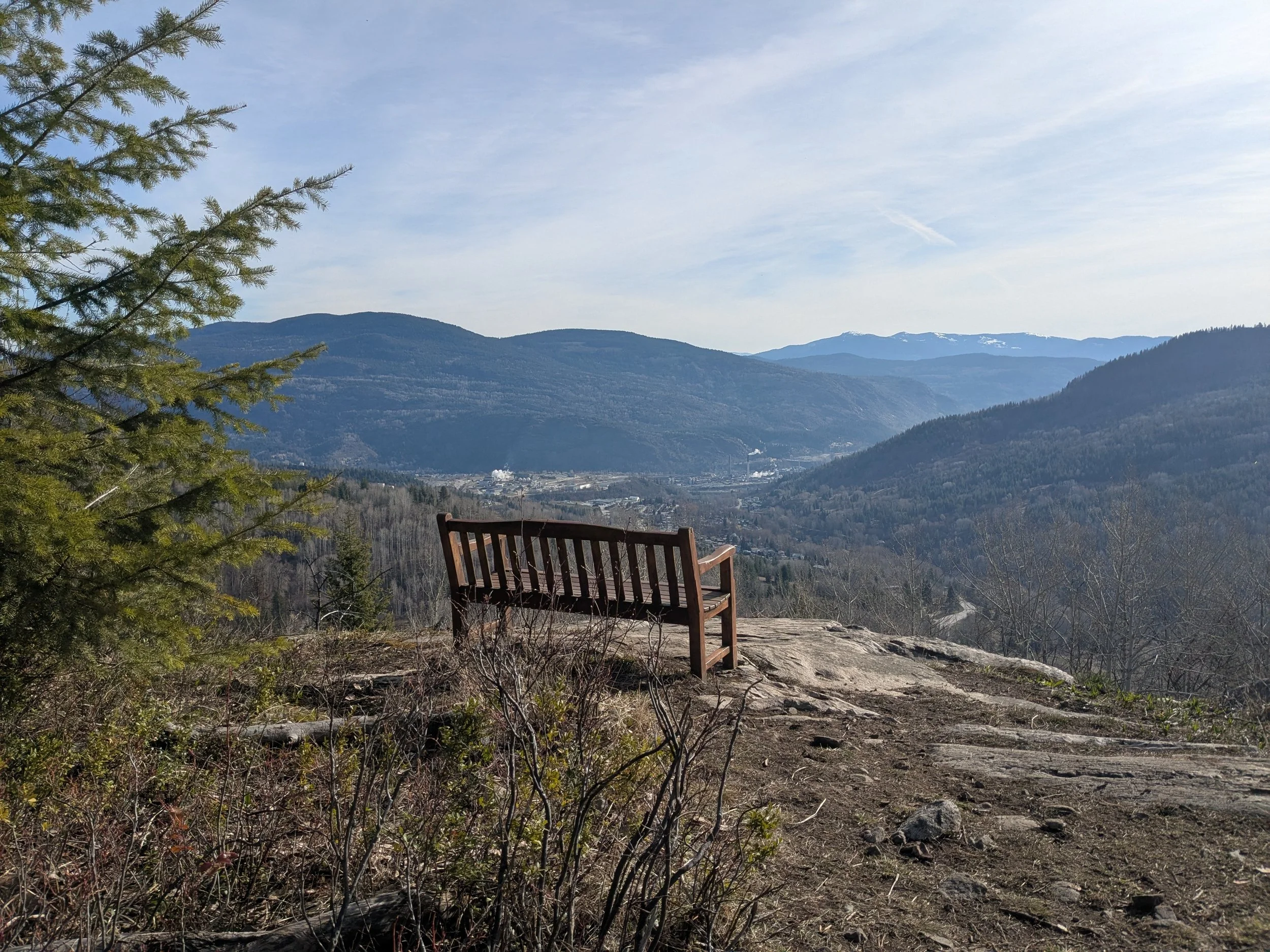 At dinner the other night, a good friend told me about how they reset their year April 1st. They make their resolutions then, ignoring the pranks. We both vaguely recalled how the term April Fools emerged: royalty laughing at the fools who didn’t know the calendar had shifted to a January start. Listening to KEXP yesterday, my favourite occult DJ, Greta, played songs for Aries season, mentioning the sign is the first in the zodiac. Cemetery is the first trail network to free itself of snow in the spring. Leaving the clearing of flattened tombstones, you enter a bit of a dark forest, or the potential of one going downhill, but you gently climb to an intersection where you can walk straight up to the site of the old mining school or loop along the side of KC mountain, where there is a bench overlooking the river and the smelter. “Teck! In all its glory” said an old friend Carly anytime we turned a corner into view of the giant industrial plant, its bright lights like something bedazzled.