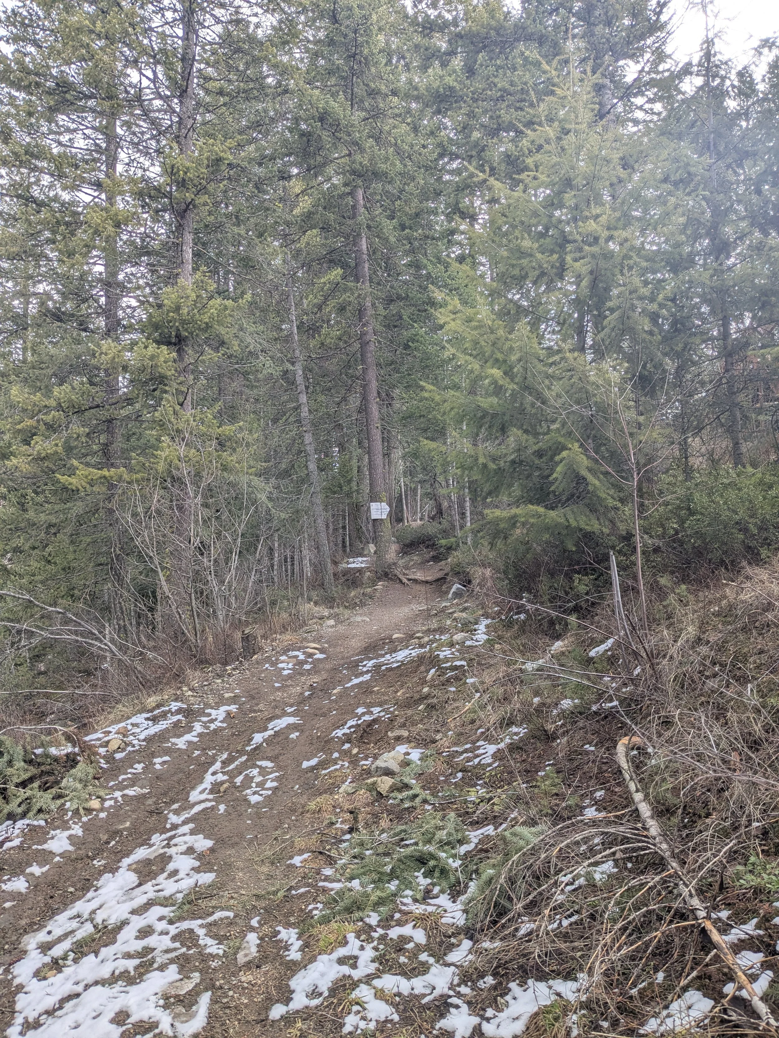 The Centre Star Gulch trail starts just above Esling Park, which marks the end of the bobsled course, and where four actors first performed “The Injury Play” at an off-festival to the 2019 Rossland Winter Carnival. I wrote the play by interviewing a dozen people in town who injured themselves doing extreme sports, though actually one confessed she was doing laundry. As I suspected, their stories followed a similar arc, and I used their words to build a short piece of verbatim theatre I later workshopped with different actors as “The Mountain.” The trail offers several switchbacks on its way up to the arena, though a cyclist or hiker that wanted to could avoid them and go straight up or down. To continue on to the next part of the trail, you need to cross through the arena parking lot, where I once saw a man tossing a ball to his dog. He threw it up to the peak of the arena roof and the dog positioned himself to catch it as it rolled back toward them.