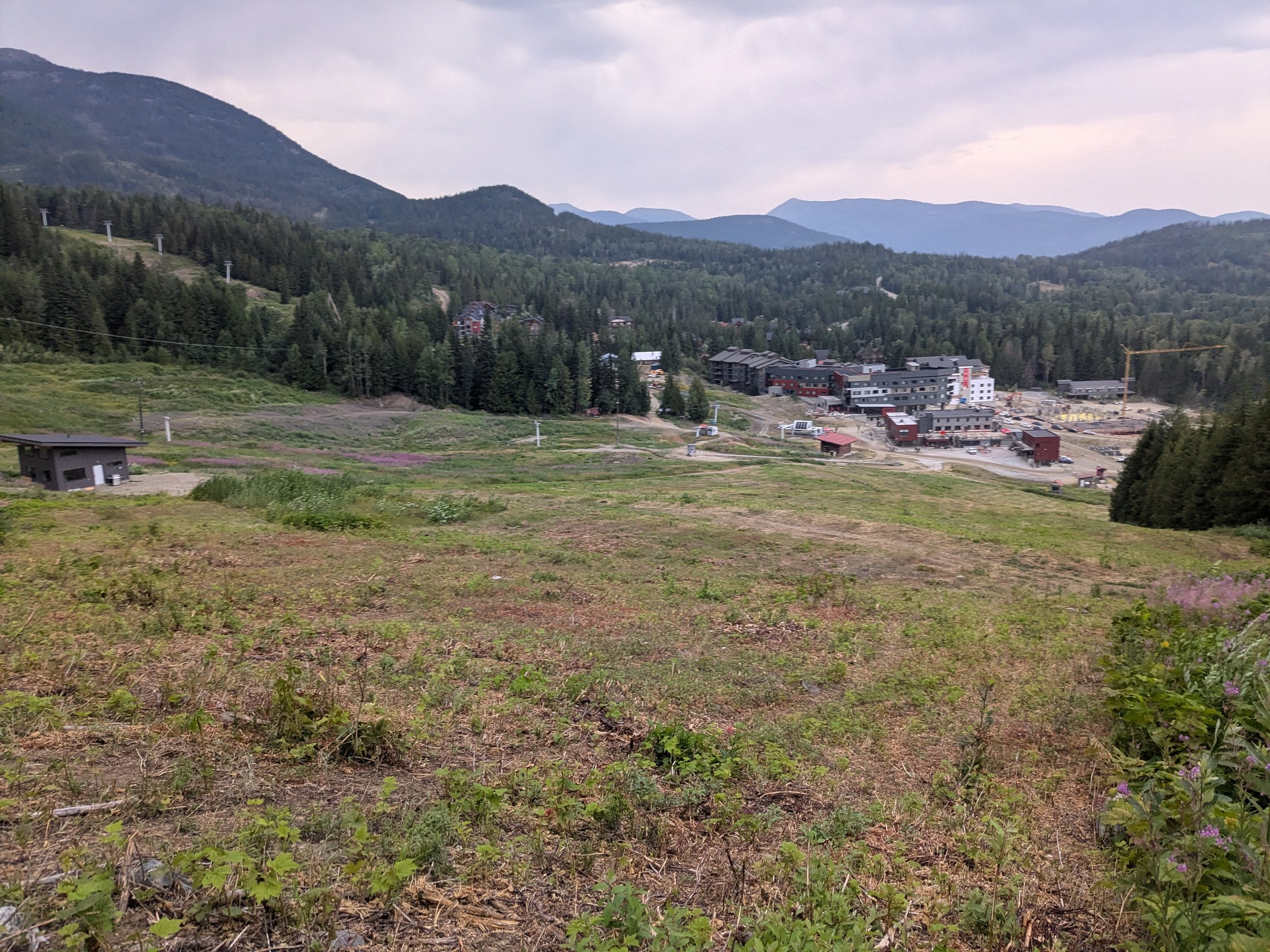 Last year they paved over part of the walking path. It’s the part that reaches through the tunnel and up a smelly little hill past the treatment plant. They paved it with glowing pavement, so it shines at night! I have yet to experience the phenomenon: I’m not in the post-dinner walk phase of my life as I was in my senior citizen era, living in my early twenties at my parents’ house next to the West Vancouver seawall. I’ve used Centennial instead as a starter run, the run I do every time I started running again. I’ve run Centennial a lot. The end of the reservoir is beautiful. Others noticed too and put a couple picnic benches and some housing. The road there leads to Red Mountain, which you can also reach along Blue Elephant, my favourite trail to bike or run.